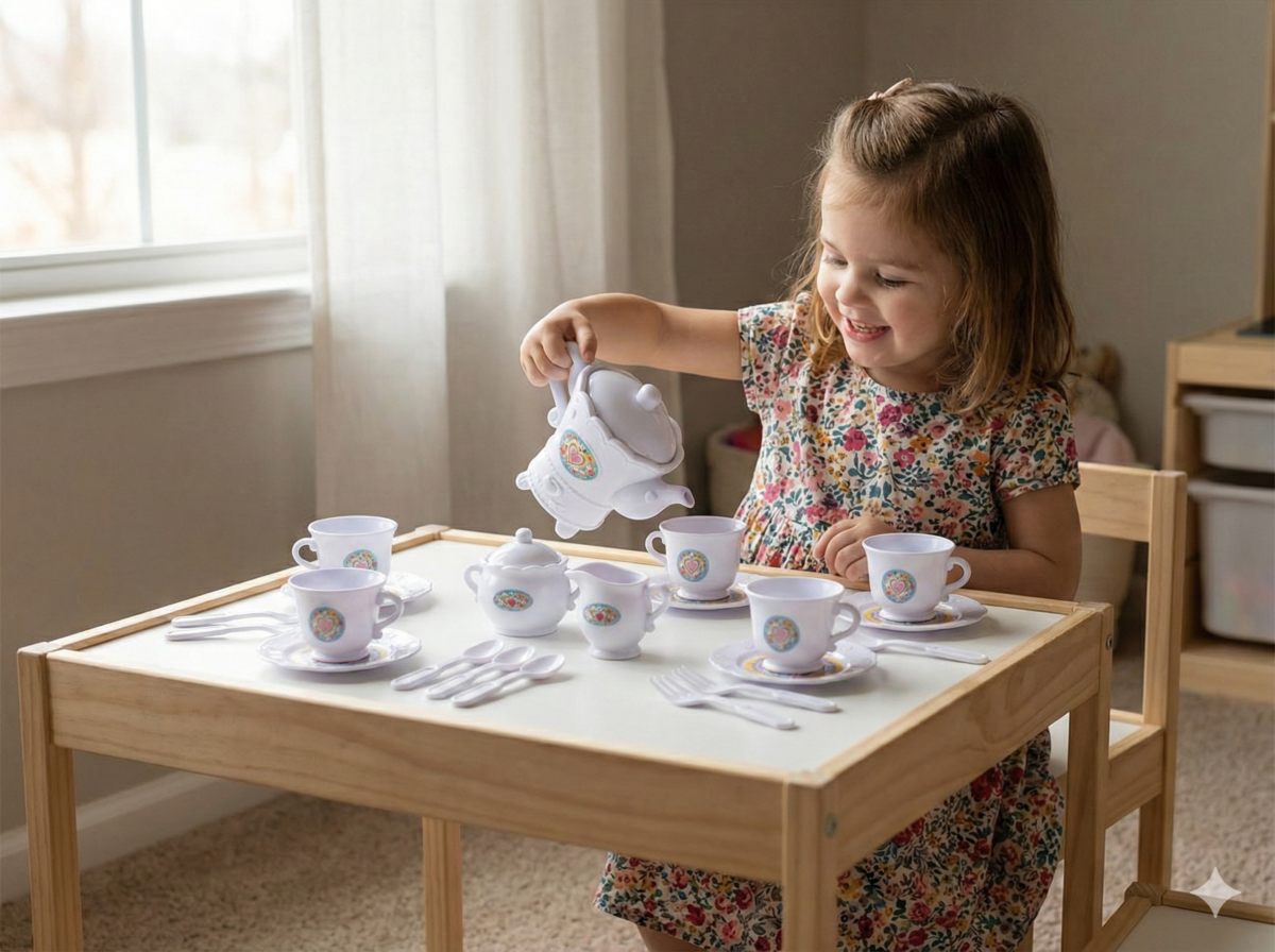 • Descripción Premium: Transforma cualquier tarde en una reunión social de alto nivel con este set de té de lujo. Con diseños inspirados en la porcelana clásica pero fabricados en materiales resistentes y ligeros, es el complemento ideal para el juego de «casita».