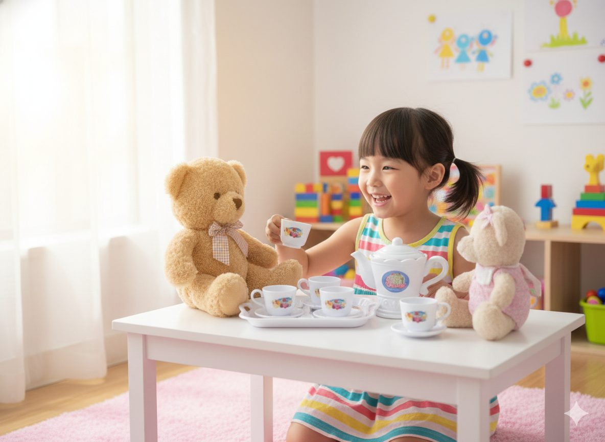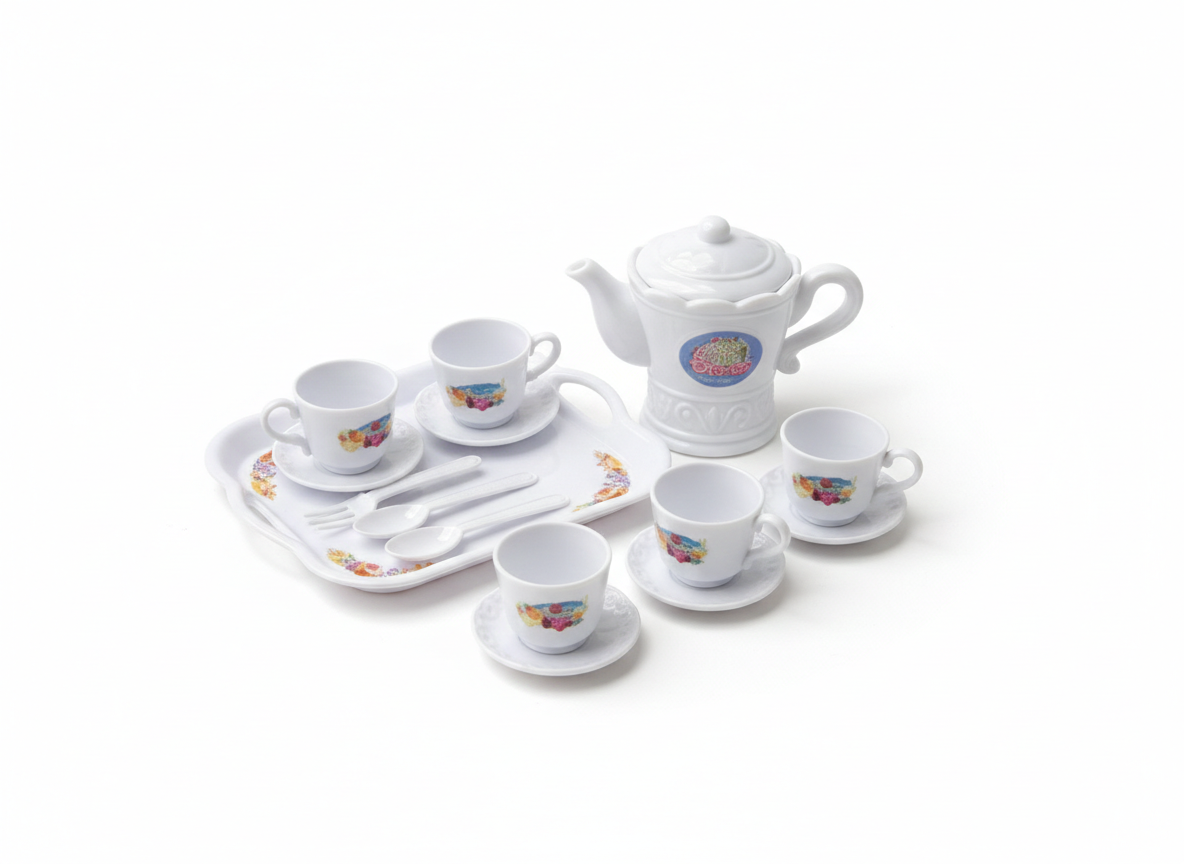 Descripción: Este set «Sweet» es la definición de delicadeza. Con un blanco impecable y detalles que recuerdan a la porcelana fina de la abuela, pero en un material resistente a prueba de caídas accidentales. Lo que hace especial a este modelo es su enfoque en los acompañamientos: viene con bandejas elegantes y una variedad de tazas para que nadie se quede fuera de la invitación. Es ideal para esos juegos de rol más tranquilos donde se cuentan historias secretas y se comparten pasteles imaginarios. El diseño es limpio y clásico, lo que lo convierte en un básico que nunca pasa de moda en el baúl de los juguetes.
