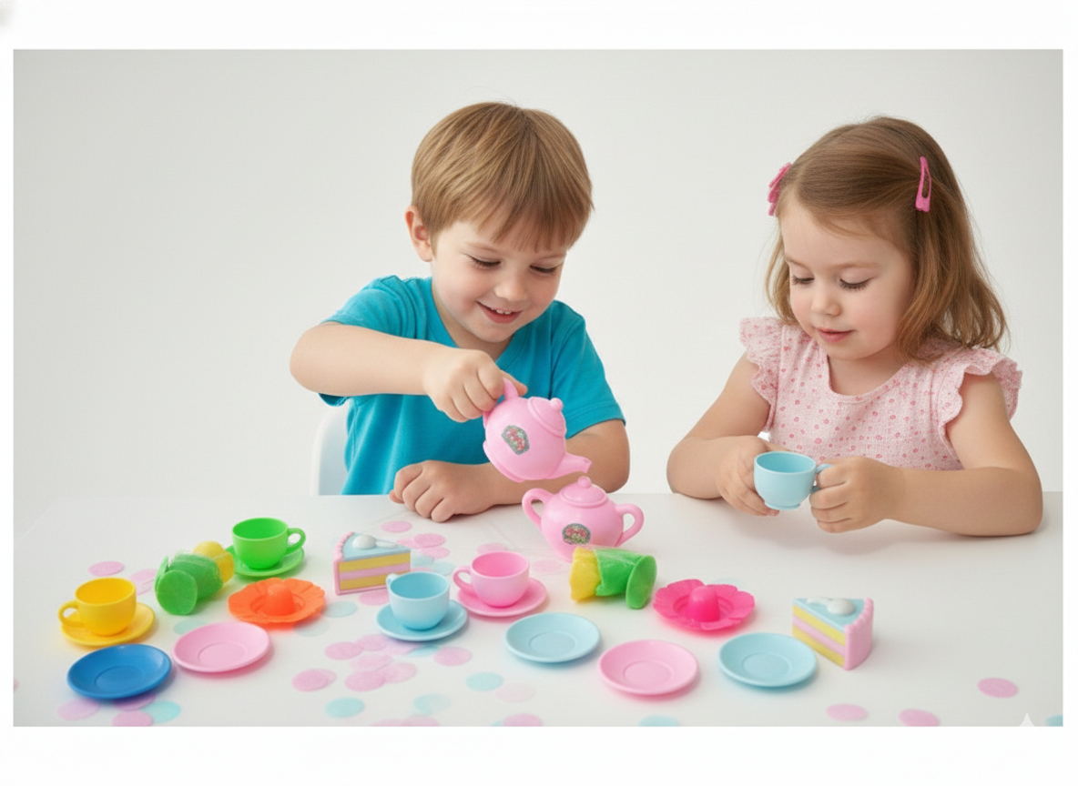 Juego de té con múltiples piezas, ideal para ampliar la diversión y crear escenarios más completos. Perfecto para juegos de roles prolongados.