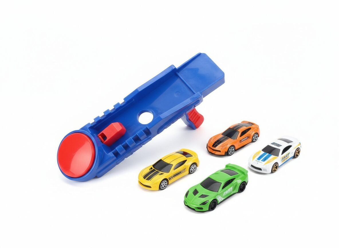 ¿Aburrido de los autos que solo ruedan? Este set lleva la velocidad a otro nivel. Incluye 4 vehículos deportivos de metal con diseños aerodinámicos y una catapulta mecánica de alta potencia. Solo carga tu auto, presiona el botón rojo y ¡mira cómo desaparece en el horizonte del pasillo!