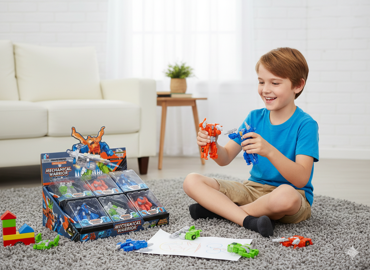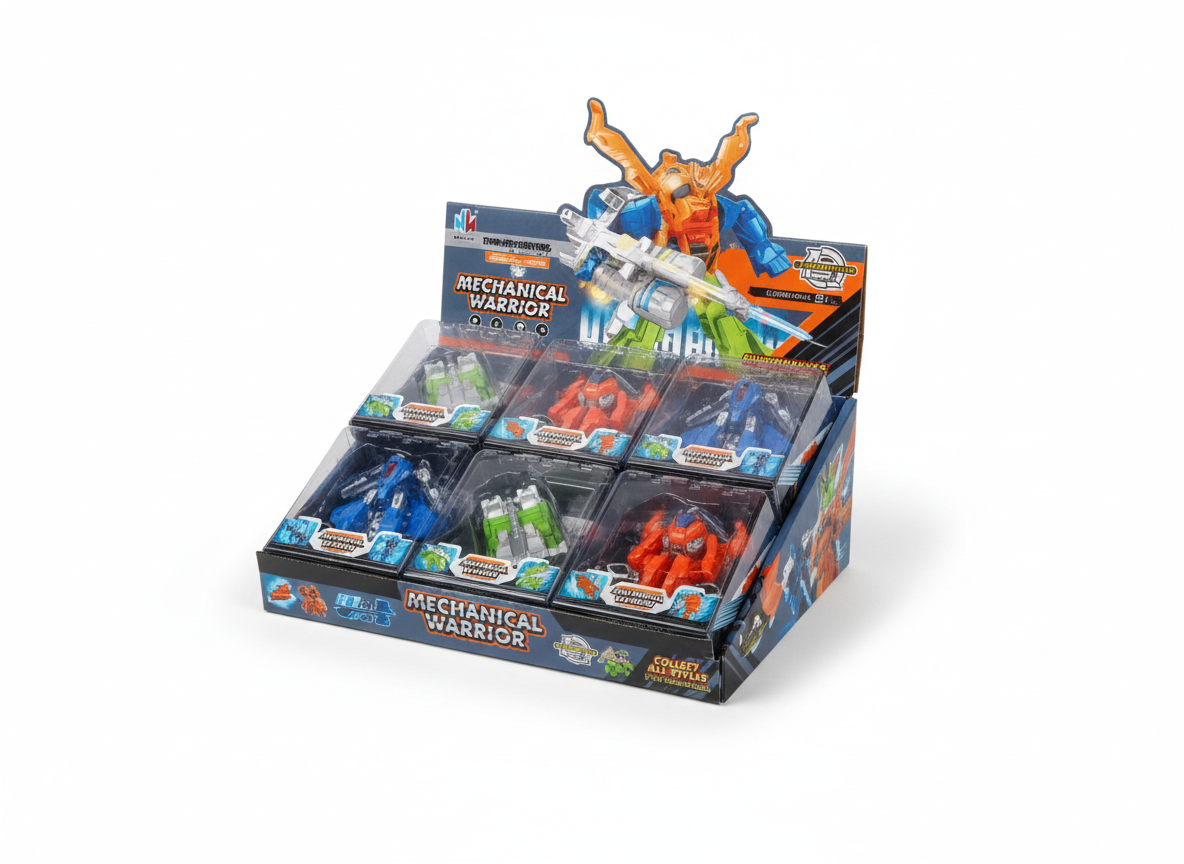 Descripción: ¿Por qué conformarse con un robot cuando puedes tener uno gigante? El sistema Mechanical Warrior es el sueño de todo fan de la robótica. Esta serie presenta 4 vehículos/robots individuales que, al unirse, forman un Mega Guerrero invencible.