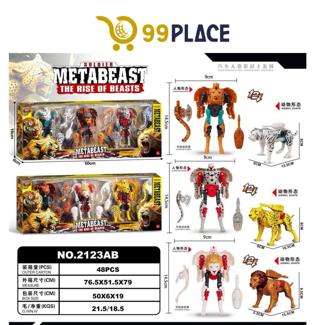 El Modelo 2123AB es un espectacular set de figuras transformables inspirado en poderosas bestias salvajes. Cada figura se convierte de modo robot a modo animal, ofreciendo una experiencia de juego emocionante y versátil para niños que aman los juguetes de acción.