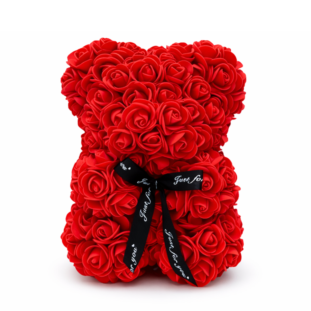 Un detalle tierno que perdura para siempre. Este oso artesanal está cubierto de suaves rosas que nunca se marchitan.