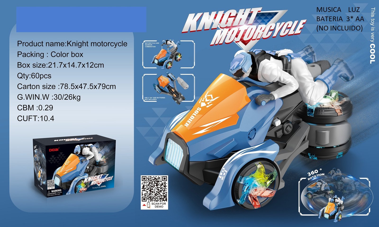 Con su estilo audaz y sus movimientos sorprendentes, Knight Motorcycle es el regalo perfecto para los niños y niñas que aman la acción, las luces y las aventuras futuristas.
