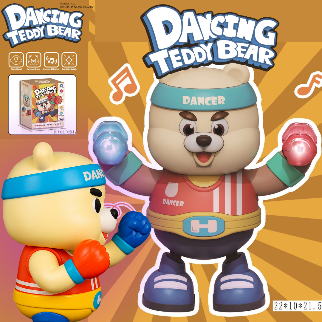 El Dancing Teddy Bear es el compañero perfecto para la diversión de los más pequeños. Con su diseño de caricatura y detalles encantadores, este oso no solo baila y canta, sino que también ilumina el ambiente con luces brillantes en sus manos. Funciona con 3 pilas AA (no incluidas) y está pensado para entretener mientras estimula la coordinación y el sentido rítmico de los niños.