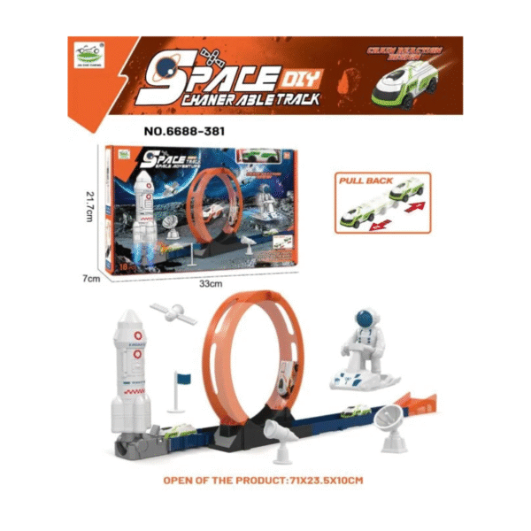 Explora el universo desde casa con la Pista Espacial Diseñada para niños mayores de 3 años, este set de 18 piezas ofrece horas de diversión y creatividad.