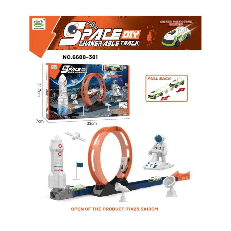 Explora el universo desde casa con la Pista Espacial Diseñada para niños mayores de 3 años, este set de 18 piezas ofrece horas de diversión y creatividad.