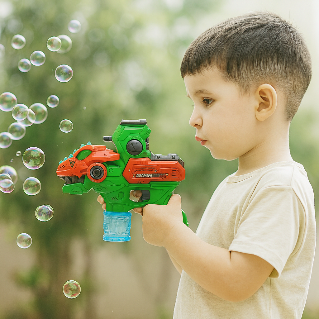 🦖✨ ¡Con la Dinosaur Bubble Gun no hay límites para la diversión! Entre burbujas, luces y sonidos, este dinosaurio se convertirá en el compañero de aventuras favorito de los más pequeños.