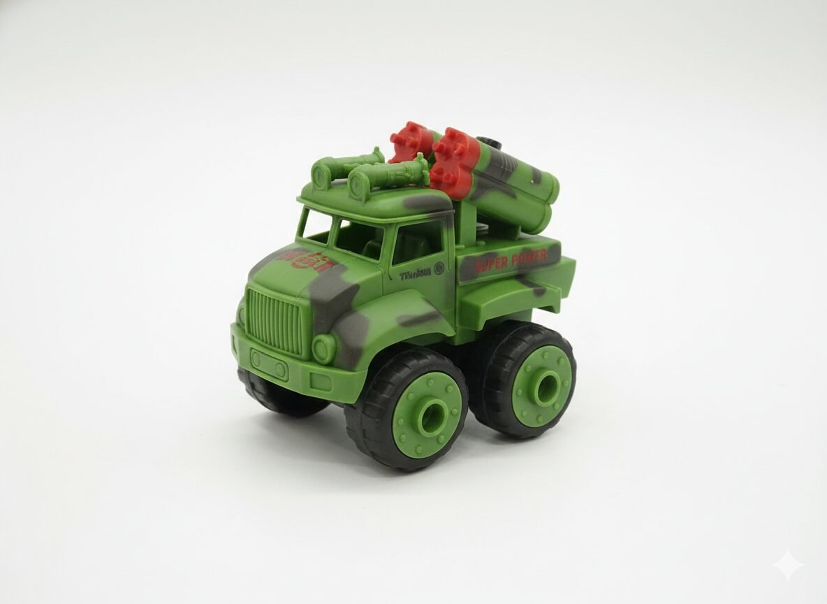Para los estrategas que aman saber cómo funcionan las cosas. Este set militar no solo es para jugar a la batalla, ¡es para construirla! Permite armar y desarmar un tanque, un camión de misiles y vehículos de transporte con el destornillador de juguete incluido. Ingeniería de combate en tus manos.