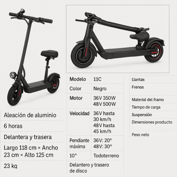 🛴 Scooter Eléctrico 11C – ¡Libera tu velocidad interior! ⚡🔥