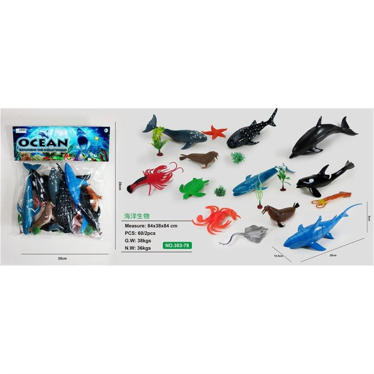 Incluye tiburones, ballenas, tortugas, focas, cangrejos, mantarrayas, estrellas de mar, langostas, orcas y mucho más 🦈🐢🦐. Además, trae plantitas marinas para recrear un mini océano en casa.