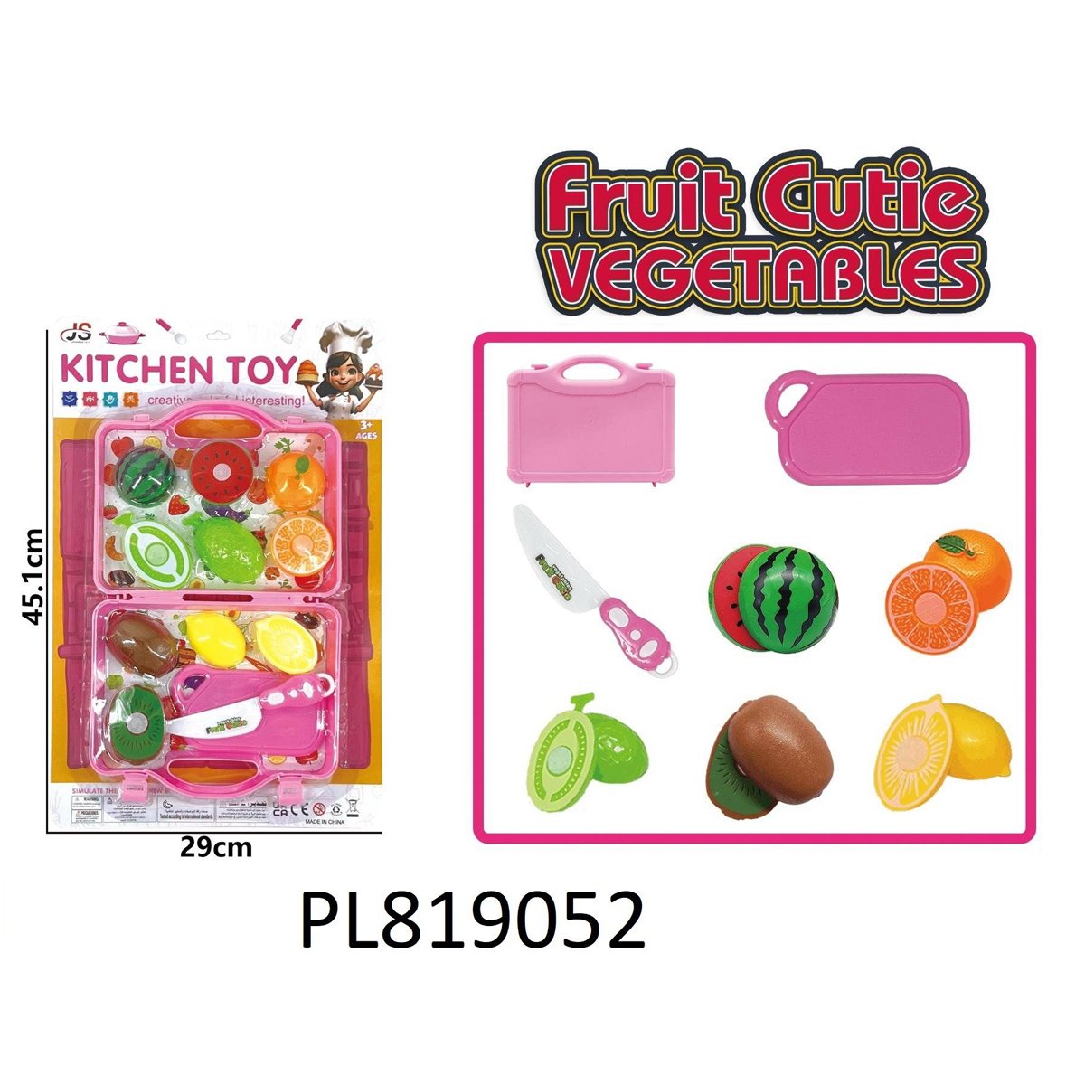 Con el set de cocina “Fruit Cutie Vegetables”, la diversión está servida. Los peques podrán jugar a ser grandes cocineros mientras cortan, mezclan y preparan sus platillos favoritos con frutas y verduras súper coloridas y realistas.