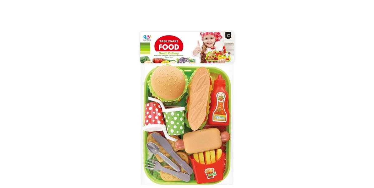 ¡Diversión servida en charola! Este increíble Burger Set es ideal para que los peques jueguen a ser chefs, meseros o dueños de su propio restaurante. Con hamburguesa, hot dog, baguette, papas fritas, refrescos y hasta salsa de tomate, tendrán todo lo necesario para un menú completo lleno de imaginación.