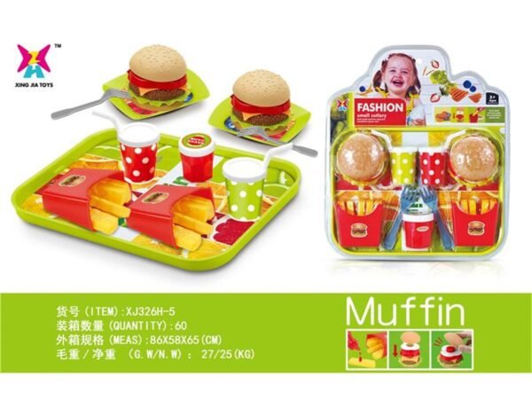 El Set de Comida Rápida “Fashion Small Cutlery” – Modelo XJ326H-5 de Xing Jia Toys es perfecto para que los niños disfruten juegos de rol como pequeños chefs o comensales. Incluye hamburguesas, bebidas y papas fritas, todo con colores brillantes y un diseño realista que estimula la imaginación y el juego creativo.