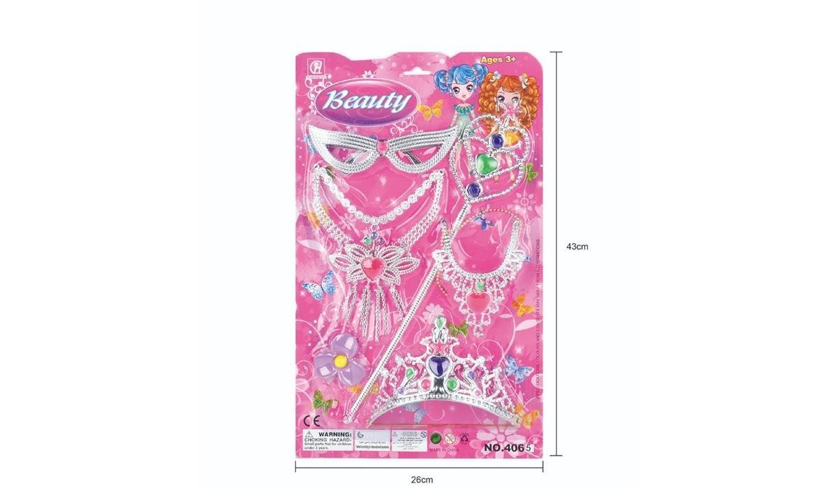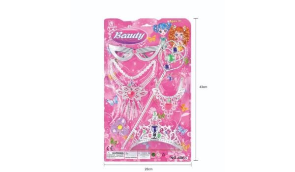 ¡Hora de brillar como una verdadera princesa! 🌟 Con este fabuloso set de joyería “Beauty”, tu pequeña podrá dejar volar su imaginación y convertirse en la reina del castillo, una súper heroína elegante o la estrella del desfile más brillante del reino. 💖
