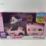 🚗 Auto deportivo rosa con puertas que se abren, detalles brillantes y stickers de “Beauty”. ¡Listo para recorrer cualquier autopista de la imaginación!
