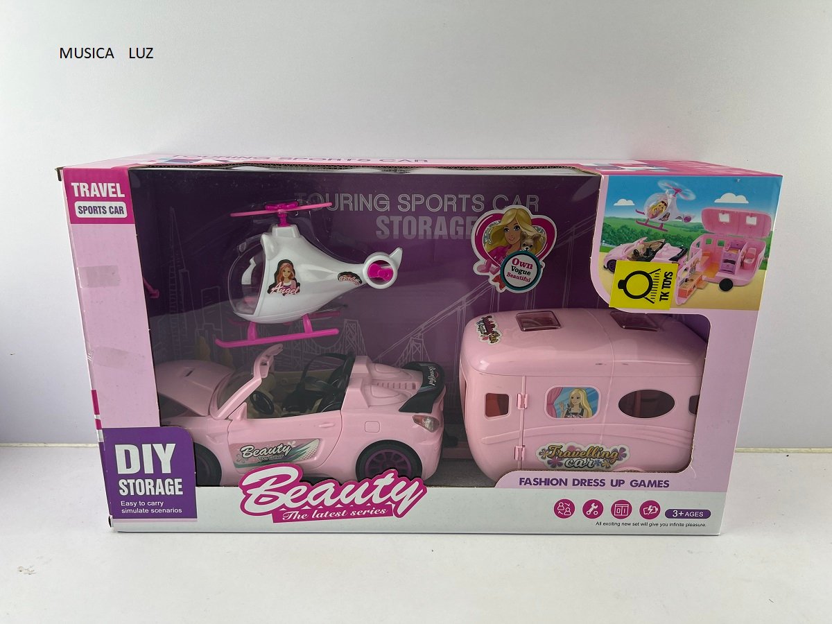 🎀 Set de Viaje “Beauty – The Latest Series” con Auto Deportivo, Helicóptero y Casa Rodante 🎀