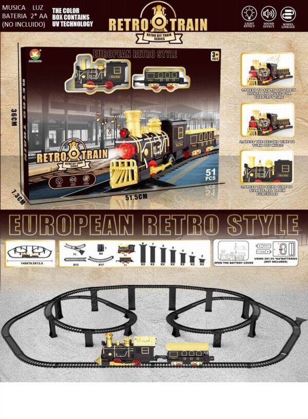 ¡Prepárate para un viaje lleno de nostalgia, luces, sonidos y mucha diversión! Este Retro Train Series te transportará a la era dorada del ferrocarril, con un diseño clásico europeo que encantará a coleccionistas, niños y amantes del buen gusto. 🕰️🌍