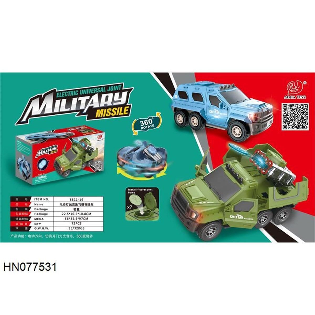 🪖🚀 ¡Vehículo Militar con Misil Giratorio 360° – Diversión en Movimiento! 🚀🪖