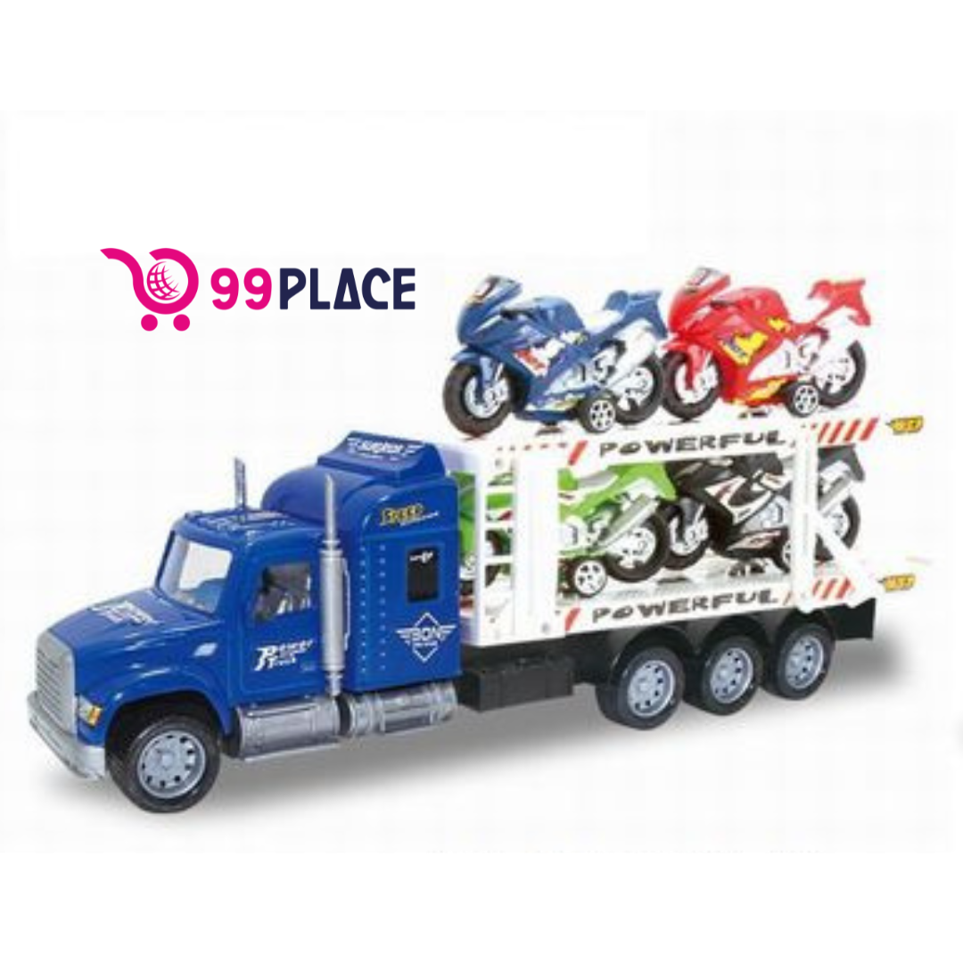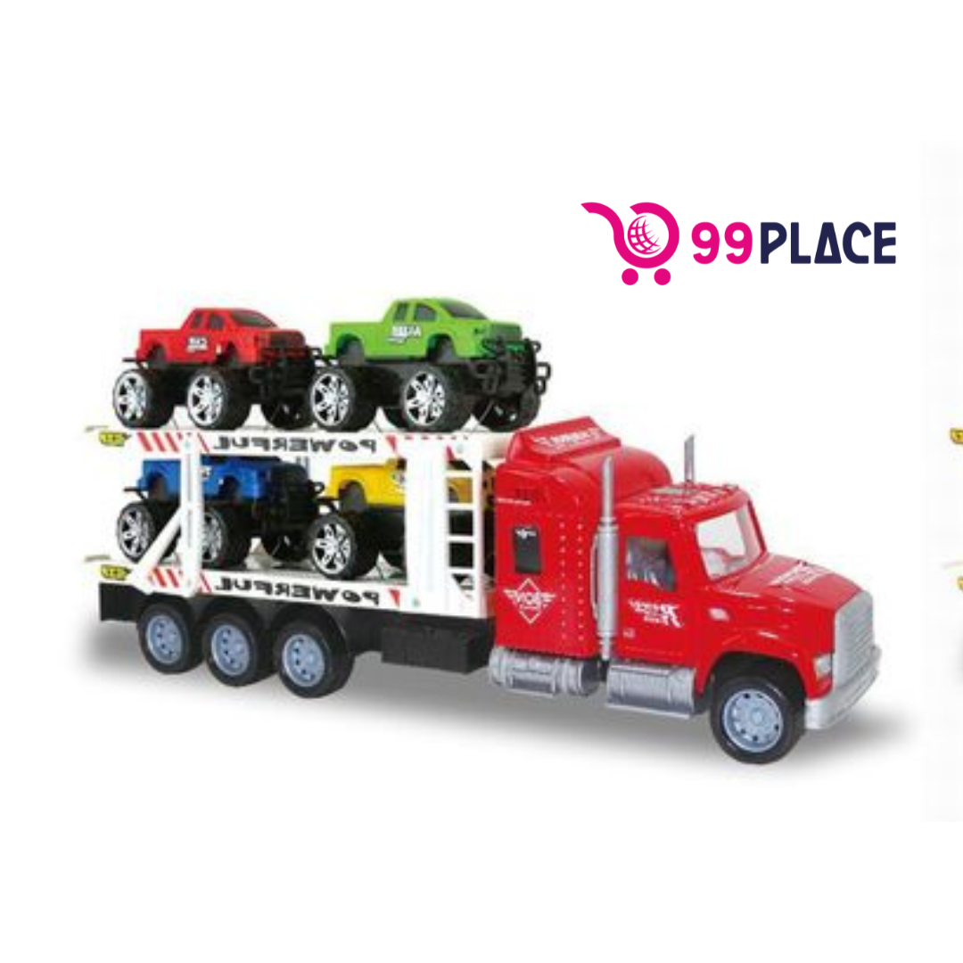 Este camión transportador de gran tamaño incluye vehículos adicionales (autos y motocicletas) para que los niños creen sus propias aventuras llenas de acción. Con un diseño colorido y resistente, es perfecto para horas de entretenimiento y desarrollo de la imaginación.