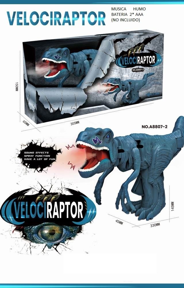 🦕 ¡Activa al Velociraptor, escucha su rugido y prepárate para vivir una aventura jurásica con luz, sonido y humo! 🌋🎶