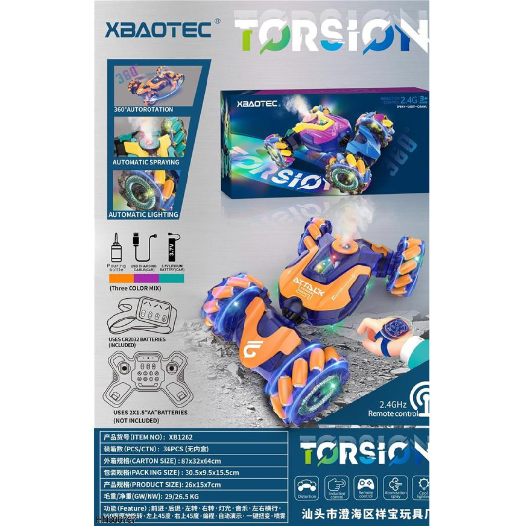 ¡La diversión lleva otro nivel con el coche remoto XBAOTEC Torsion! Este vehículo todoterreno está diseñado para impresionar con su giro de 360°, efecto de humo realista, luces LED espectaculares y control inteligente por gesto en la muñeca.