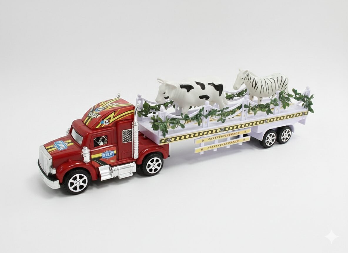 ¡La naturaleza llega a casa! Estos tractores y camiones de carga están diseñados para los pequeños amantes de los animales. Ya sea transportando una cebra de la sabana en un remolque de tractor o llevando una vaca y una cebra en un gran camión de plataforma decorado con follaje, la aventura está asegurada.