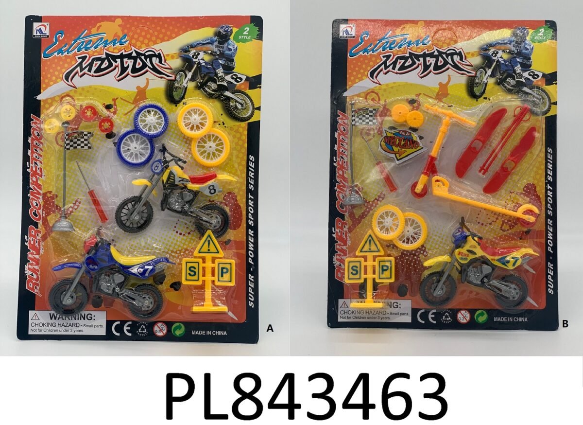 El set definitivo para los amantes de las dos ruedas y el tuning. Este pack incluye una motocicleta de alto rendimiento con rines intercambiables y un scooter de nieve con esquís. Viene con señales de tránsito y herramientas para que personalices tu vehículo antes de lanzarte a la pista.