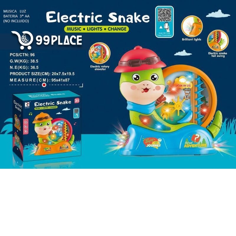 ¡Diversión interactiva llena de luces y sonidos! Esta adorable serpiente eléctrica estimula los sentidos de los pequeños gracias a sus efectos de música, luces brillantes y movimiento giratorio. Ideal para fomentar la curiosidad y el entretenimiento.